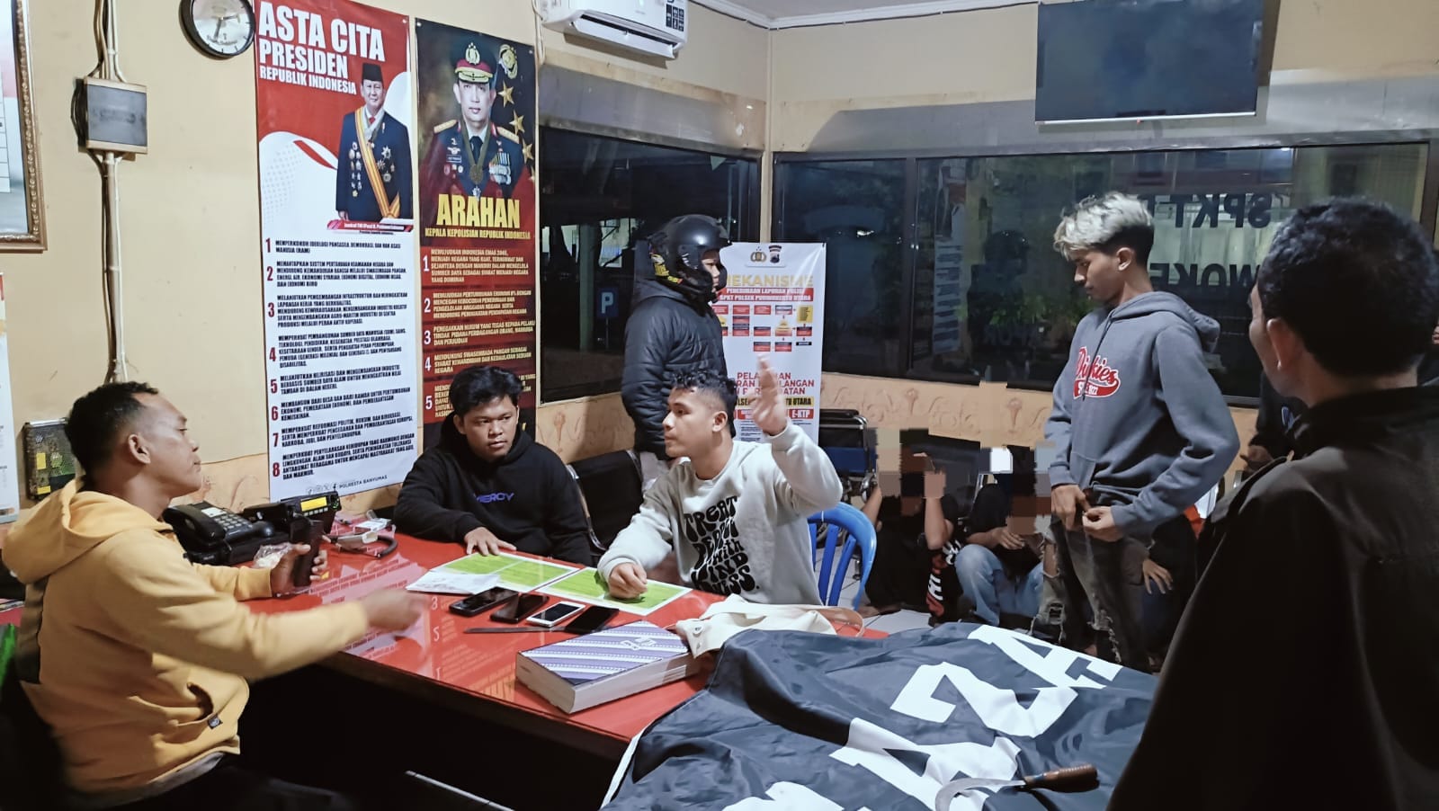 Polsek Purwokerto Utara Polresta Banyumas mengamankan sekelompok anak yang membawa senjata tajam (Sa