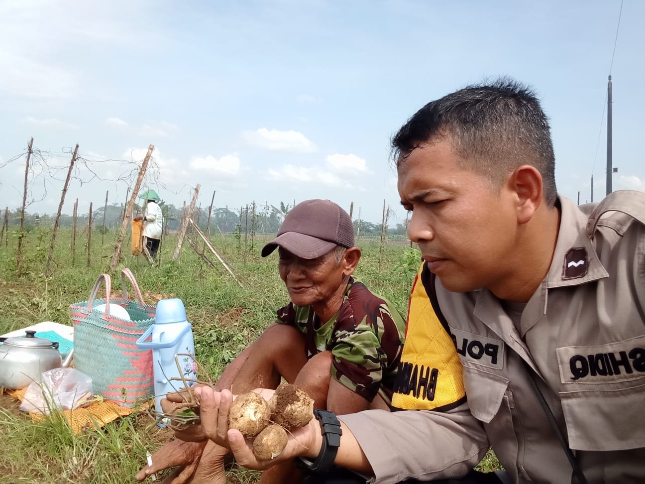 Bhabinkamtibmas Polsek Sumbang Polresta Banyumas Aipda Shidiq melakukan sambang ke area pertanian be