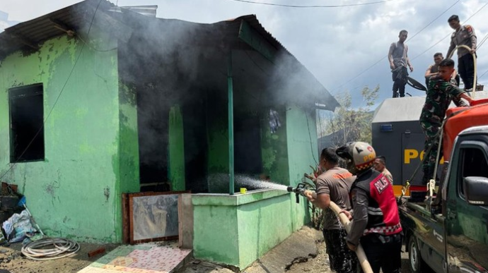 Kebakaran melanda di komplek Kodam Lama Jayapura, Papua, personel Polri bahu membahu bersama TNI unt