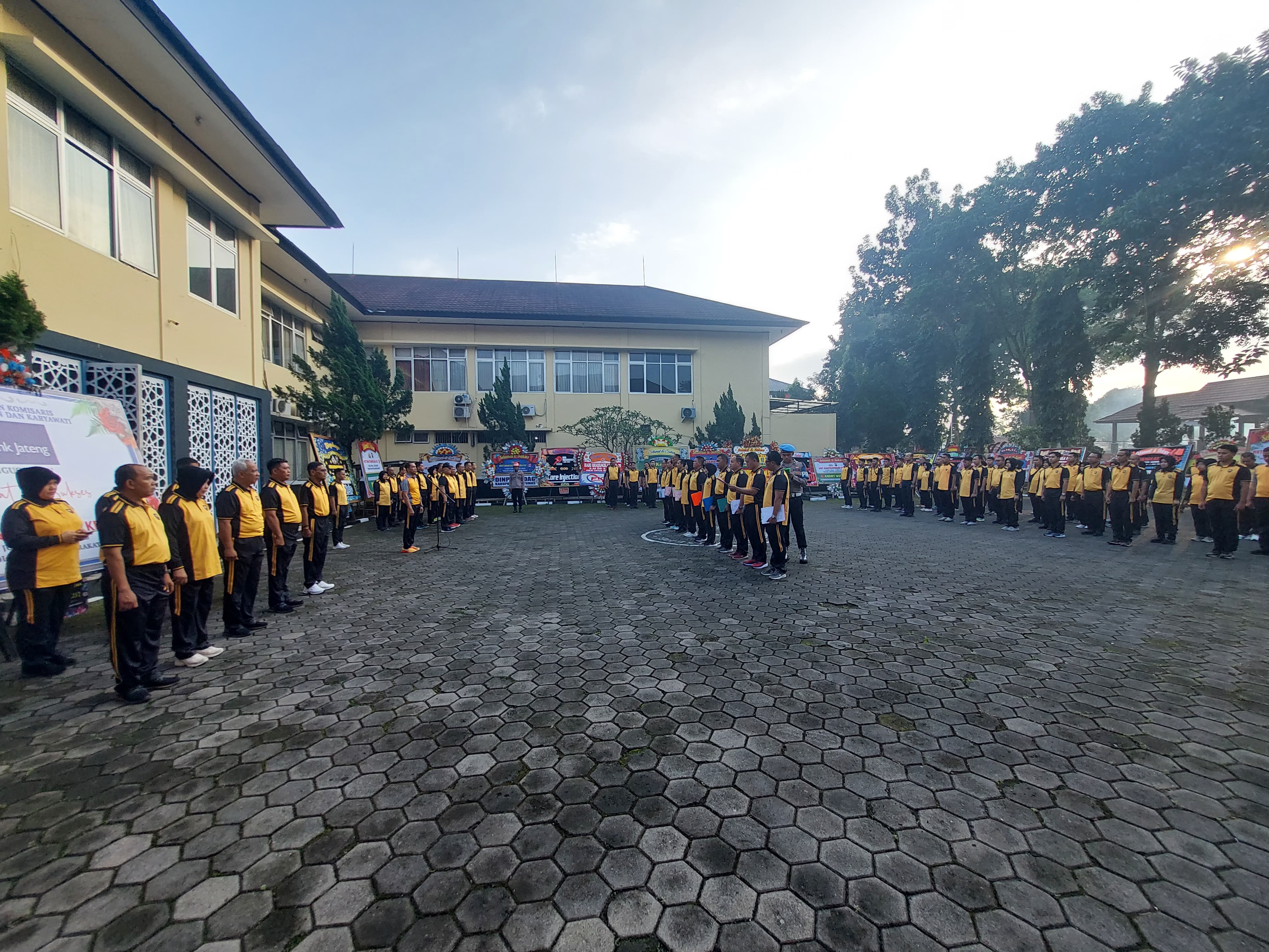 Banyumas, 4 Juli 2025 - Personel Polresta Banyumas melaksanakan apel olahraga pagi yang di halaman b