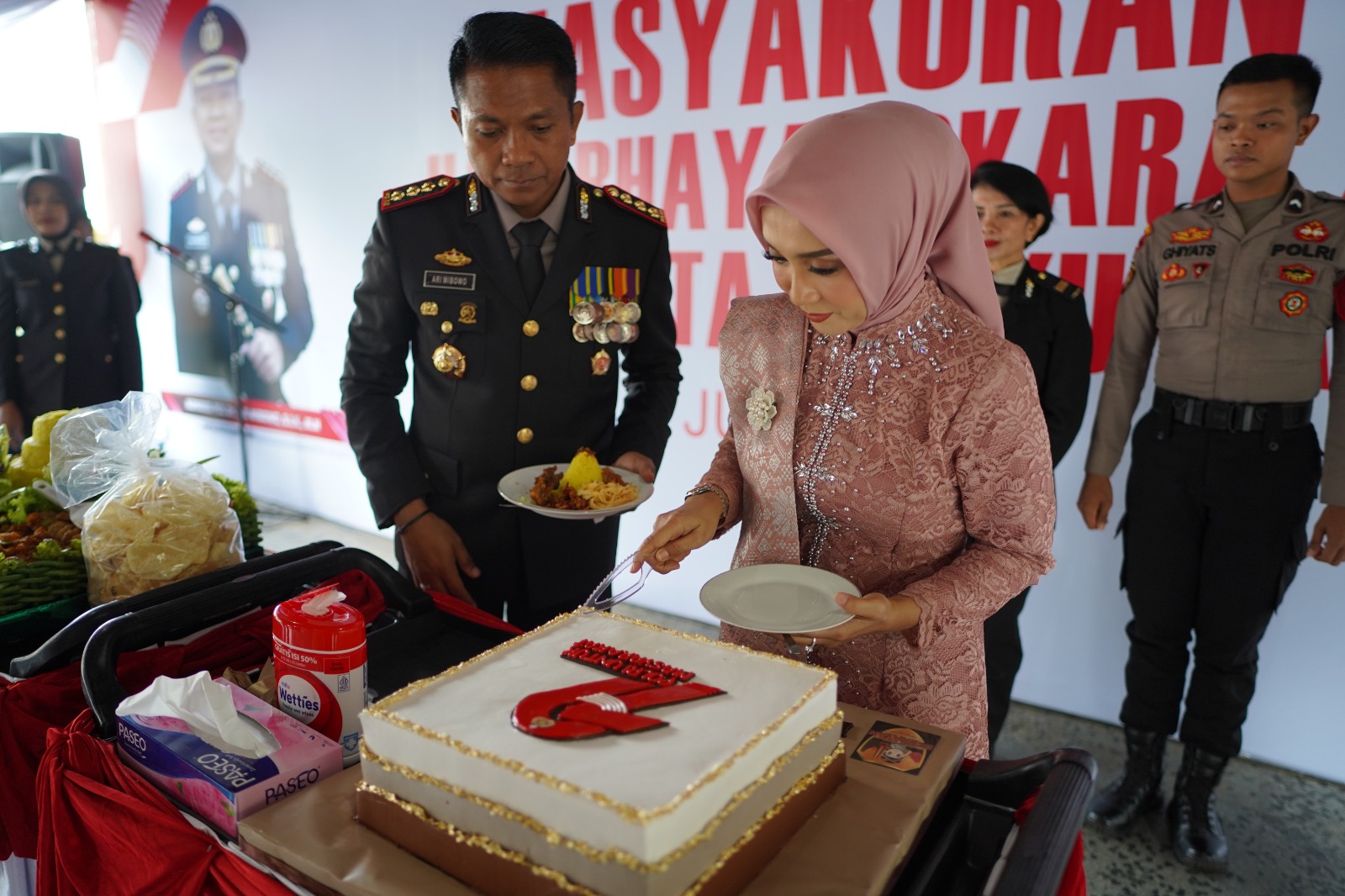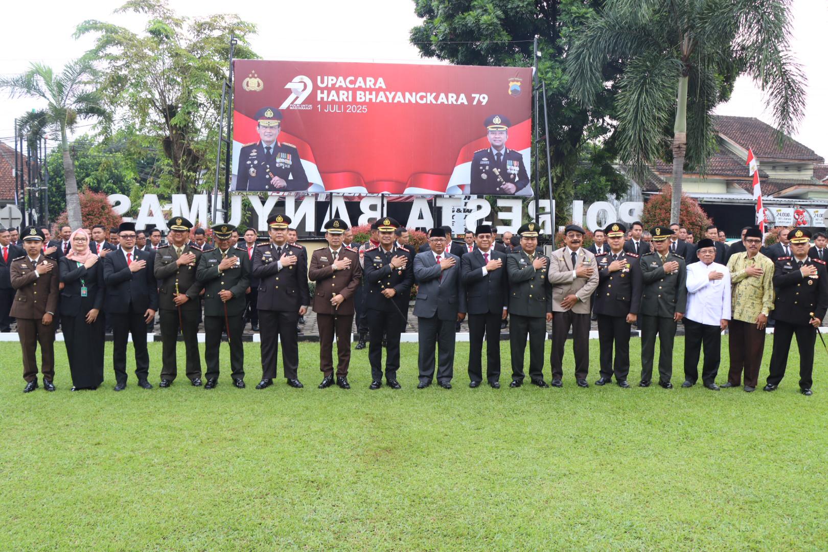 Kepolisian Resor Kota Banyumas menggelar upacara peringatan Hari Ulang Tahun (HUT) Bhayangkara ke 79