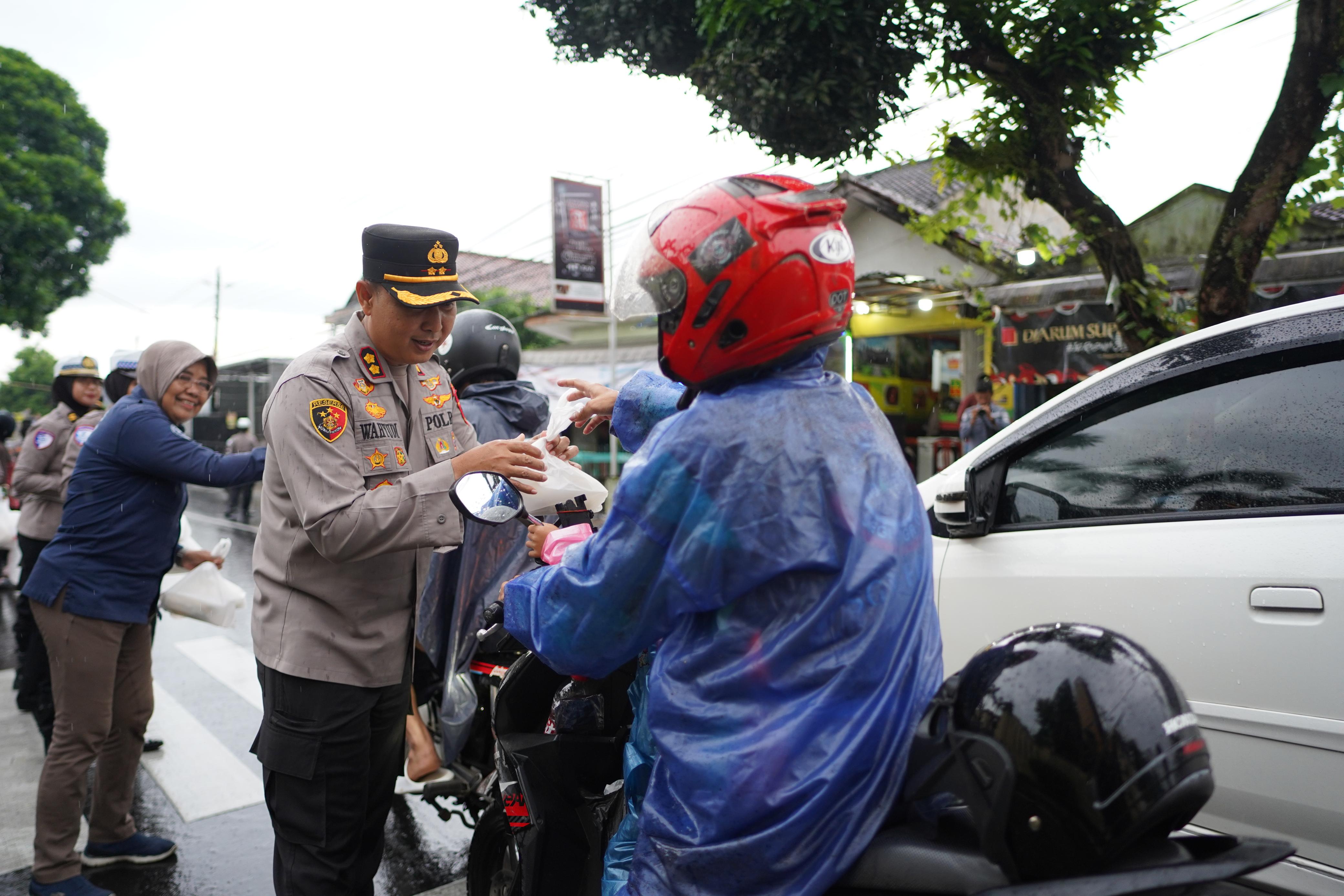 Polisi Wanita (Polwan) Polresta Banyumas dalam rangka berbagi keberkahan di bulan suci Ramadan melak